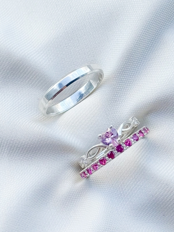 Par de aliança Pace rosa + Solitário Love rosa - Prata 950