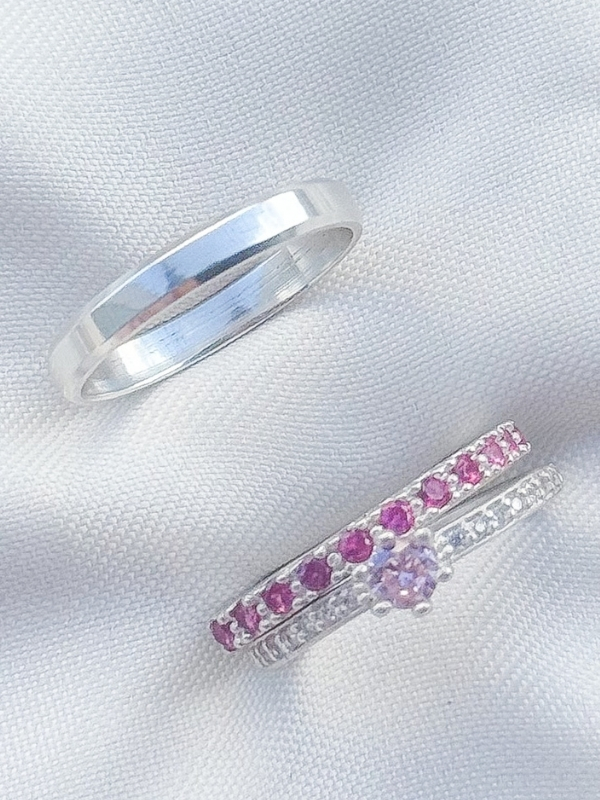 Formato Externo: Reta, lisa e com bordas chanfradas. E outro modelo cravejado meia volta de zirconias.