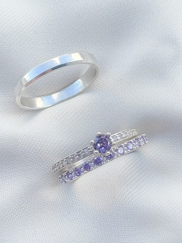 Par de aliança Pace roxo + Solitário romantic roxo - Prata 950