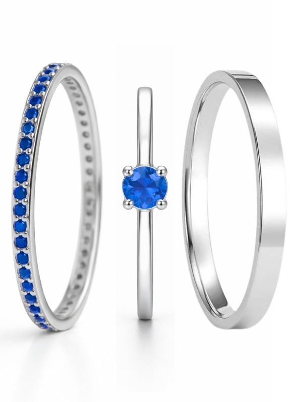 Formato Externo: reta e um modelo com meia volta pedras de zircônia azul cravejadas.