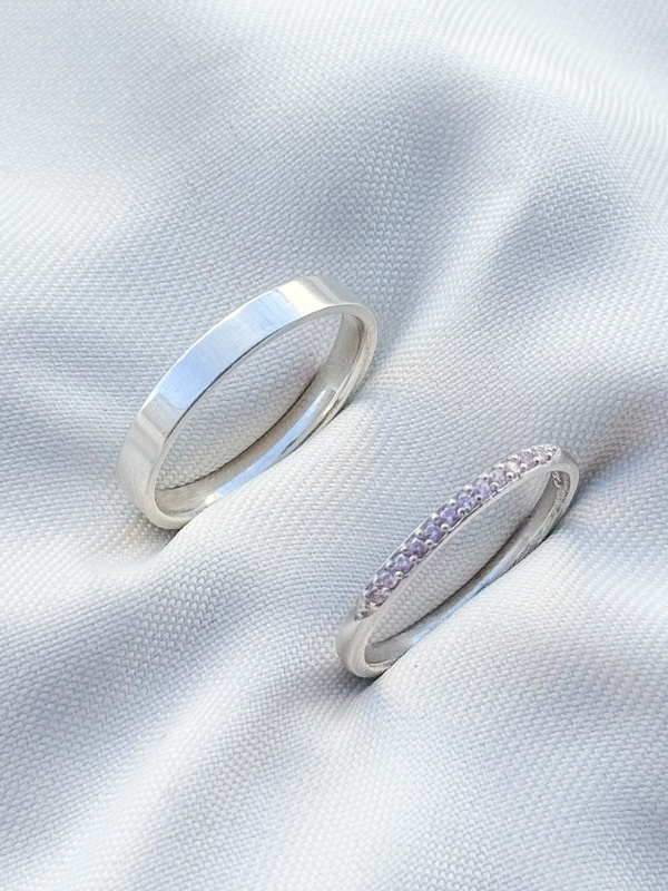 Par de aliança Polônia com pedra holanda 3mm - Prata 950