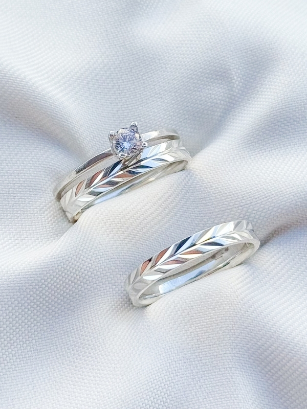 Par de Aliança Romana + Solitário Encanto cristal - Prata 950