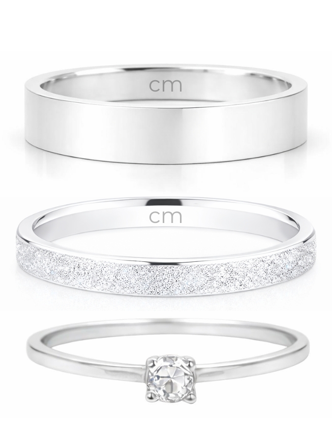 Par de Aliança Snow 2mm e 4mm + solitário encanto - Prata 950