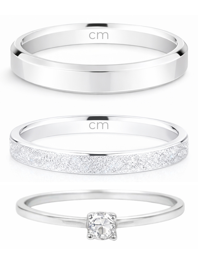 Par de Aliança Snow 2mm e chanfrada 3mm + Solitário cristal - Prata 950