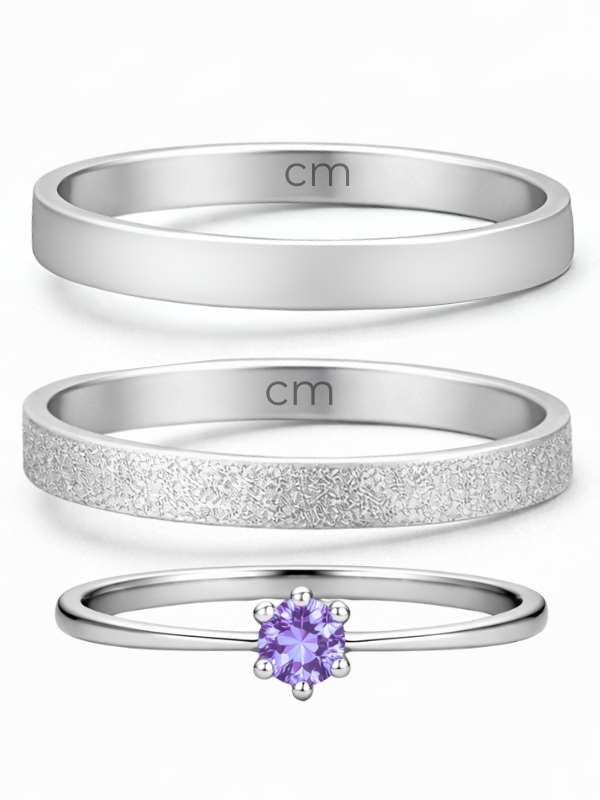Par de Aliança Snow 2mm + Solitário Roxo - Aço Inox