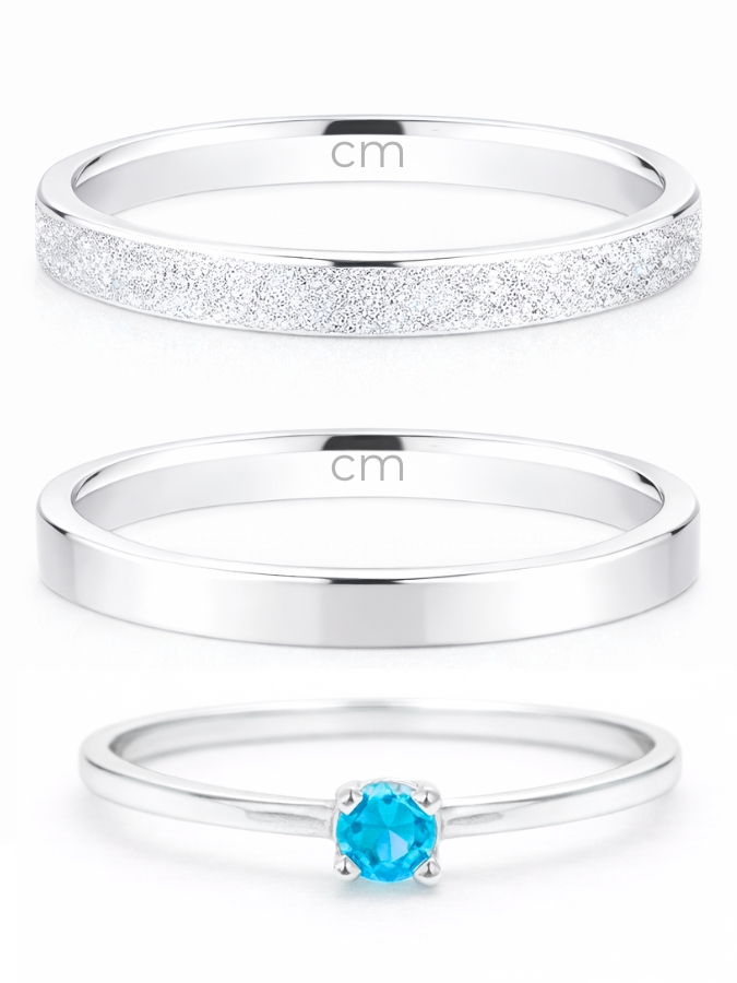 Par de Aliança Snow White 2mm + Solitário Azul - Prata 950