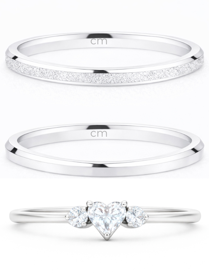 Par de Aliança Snow White 2mm + Solitário coração mini - Prata 950