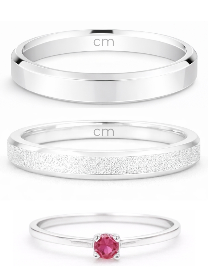 Par de Aliança Snow White 3mm Diamantado + Solitário Encanto Rosa escuro - Prata 950