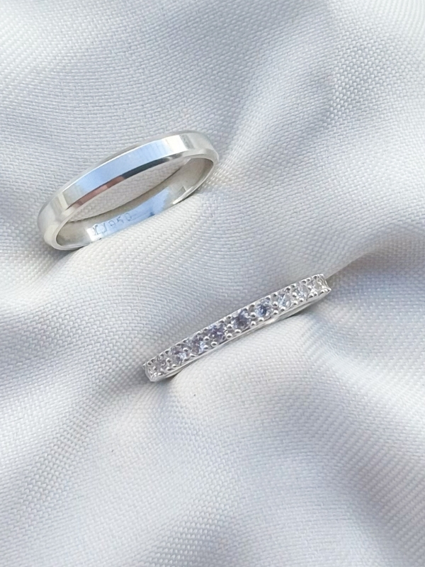 Formato Externo: Reta, lisa e com bordas chanfradas. E outro modelo cravejado meia volta de zirconias.