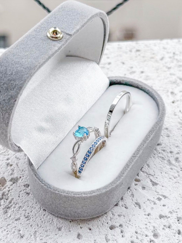 Formato Externo: reta e um modelo com pedras de zircônia cristal cravejadas meia volta azul