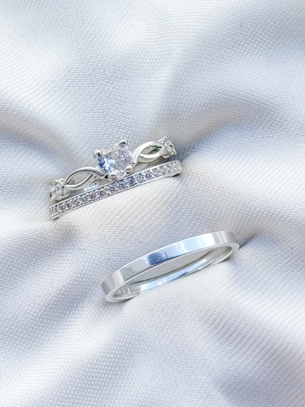 Par de alianças Polônia com pedra + Solitário Love - Prata 950