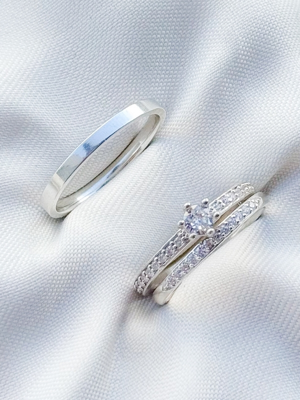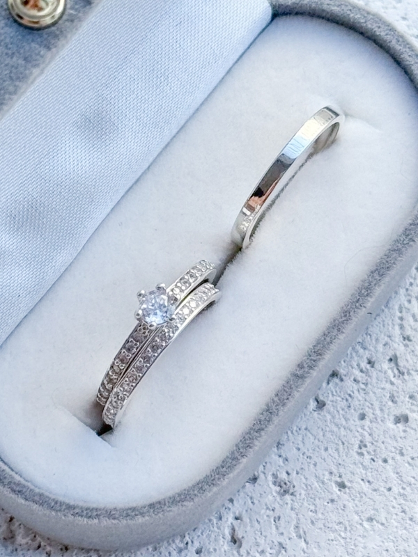 Par de alianças Polônia com pedra + Solitário Romantic - Prata 950