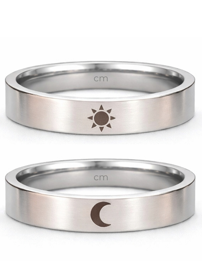 Par de Alianças Sol e Lua Clássica - Aço inox