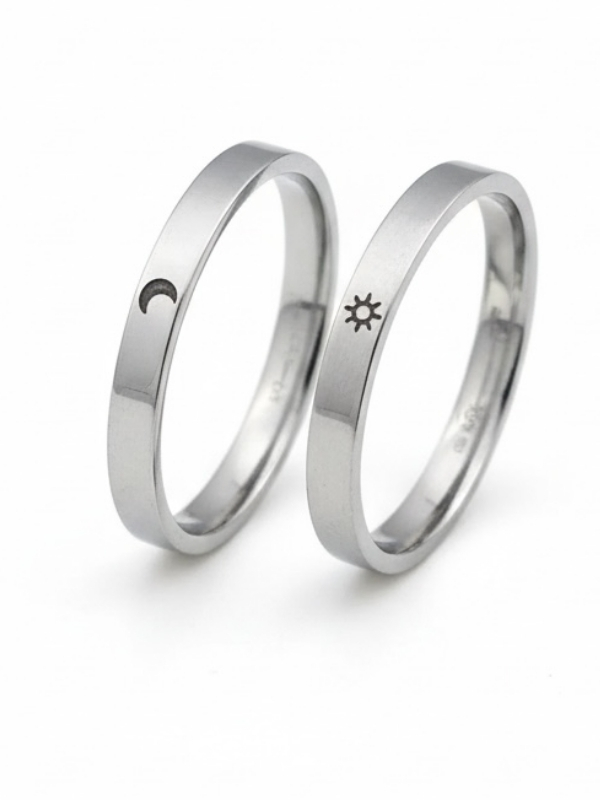 Par de Alianças sol e lua Vazados 2mm - Aço inox
